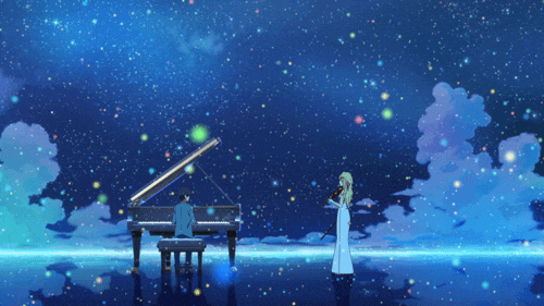 옛적에는 신동 피아니스트라 불렸지만 자신을 이끌던 어머니의 죽음을 계기로 트라우마가 생겨 몇 년 전부터 제대로 피아노를 칠 수 없게 된 소년 아리마 코세이의 눈에 비추어진 세상은 여느 또래의 형형색색이 아닌 모노톤의 단조로운 풍경일 뿐이다. 좌절감에 빠진 도중 미야노조 카오리라는 여자아이와 엮이면서 트라우마를 극복하는 이야기.